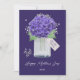 Cartão de Dia de as mães floral púrpura doce e personalizado, com hydrangeas púrpuras e jarro de dentro de mason para bebê. As lanternas e as estrelas cintilantes adicionam um charme mágico a este design floral fofo. Um grande coração floral com texto personalizado no fundo.