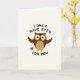 This charming greeting card features a sweet owl centered on a soft cream background. The owl has warm chocolate-brown feathers, a lighter beige belly dotted with small speckles, and large golden eyes with dark pupils that gaze forward with a gentle expression. Its small wings are held slightly open, as if offering a friendly hug. A single red heart floats to the owl’s left, adding a simple touch of romance. Surrounding the owl, the message “I ONLY HAVE EYES FOR YOU” is written in hand-drawn, easy-to-read lettering that curves above and below the character. The dark ink letters frame the owl without overwhelming the design. With its caring message and cozy details, this card is a lovely way to share love or Valentine’s Day affection with a partner or close friend.