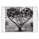 Imagem preta e branca de escultura em forma de coração de ferro em forma de seca e uma mensagem de amor correspondente
