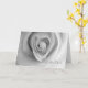 Foto preto e branco com um olhar da textura das canvas. As pétalas cor-de-rosa formam a forma de um coração nesta eu te amo (Ich Liebe Dich) no cartão alemão. A imagem e o verso copyright o © 2014, estúdios de Shoaff Ballanger.