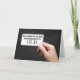 Mão segurando um cartão sinal em fundo de quadro-negro para identificar como velho aniversário.
