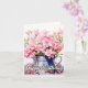 Este cartão de aniversário verdadeiramente elegante apresenta uma ilustração de algumas flores de lírio florescentes num lançador de metal. Sinta-se à vontade para ajustar todas as opções disponíveis, conforme desejar.