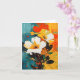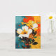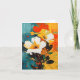 Uma representação colorida, abstrato, pop, de flores brancas contra um fundo azul, laranja e amarelo faz um cartões de agradecimentos notável.