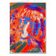 Imagem impressão superficial de uma garota virada para a esquerda, estilo abstrato, cor laranja, verde, azul, púrpura brilhante. Cartão de vazio para sua própria mensagem ou personalização.