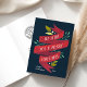 Cartões de natal dobrados elegantes para sua característica do negócio "nós desejamos-lhe tipografia indicada por letras disponivel do Feliz Natal" em uma fita vermelha da aguarela acentuada com as folhas do vermelho e do verde e as bagas brancas. Personalize com seu nome ou nome da empresa e o ano no branco em um fundo dos azuis marinhos, e adicione uma mensagem pre-impressa costume ao interior, junto com seu logotipo do negócio.