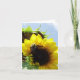 Uma abelha demonstra a indústria paciente da sua espécie num girassol num dia brilhante de Verão. Brilhe o dia de alguém, você mesmo, com este cartão quente!
