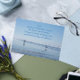 Cartão de saudação ao estilo do vazio que mostra a foto de um par de pílulas de praia em uma praia oceânica acompanhada pelas palavras inspiradoras da Oração da Serenidade impressa em roteiro azul. Selecione entre um cartão de estilo mate ou brilhante. Excelente para enquadramento também!