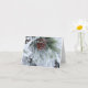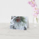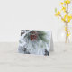 Cartão de nota vazio com cena bonita do inverno de um cone do pinheiro e do pinho coberto na neve. Porte postal de harmonização