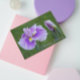 Cartão de saudação de aniversário para tudo o que mostra a foto de uma linda, roxa flor de íris japonesa da variedade sem barba. Selecione entre um cartão de estilo mate ou brilhante.