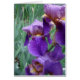 Cartão de nota, cartão postal e carimbo. Íris na chuva - íris roxa coberta com gotas de chuva.