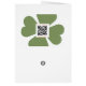 Esta Rua. O Cartão do Dia de Patrick tem um trevo verde e dourado quatro, à esquerda, junto com as cores da bandeira irlandesa. A dentro é uma bênção irlandesa, juntamente com a Rua gaélica. As bençãos de Patrick, "Éire go Brách" e "Lá Fhéile Pádraig Sona Duit" são perfeitas para enviar todas as suas Ruas.