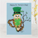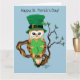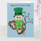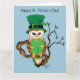 Uma coruja de celeiro giro vestindo um chapéu verde de duende com dois telhados.