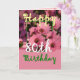 Estas alegres flores cor-de-rosa e o verso da "flor mágica" que as acompanha é uma forma doce de desejar a sua irmã um feliz aniversário. O texto do dentro é personalizável, portanto você pode adicionar seu próprio sentimento especial. Para ver mais dos meus cartões de aniversário, digite o ano que você quiser e digite ou corte e cole na caixa de busca do Zazzle: aniversário do jaclinart