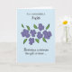 Pegue este cartão hoje se você tem uma irmã que está prestes a celebrar seu aniversário em breve. No primeiro plano do cartão azul claro estão lindas flores violetas que ela definitivamente amará.