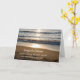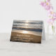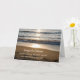 Parabéns no cartão do dia do casamento para irmã e irmão em direito com ondas caindo na praia no pôr do sol, e verso sentimental.