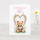 Mande desejos de aniversário para sua irmã no seu quinto aniversário da forma mais bonita possível com este cartão adorável. Um ursinho, diante de um punhado de flores coloridas, apresenta um coração mostrando a idade de 5 anos. Faça seu aniversário inesquecível com este cartão encantador. Um cartão de 5 de aniversário para uma irmã.
