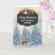 Feliz Natal para o cartão-irmã com o padrão rústico do quadro-negro do país e a cena da floresta com cor de neve com veados e pássaros.