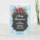 Feliz Natal para o cartão-irmã com o padrão rústico do quadro-negro e folhagem de inverno com poinsettias.