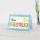 Cartão italiano da páscoa com texto floral colorido - Buona Pasqua e pintinho de canto