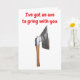 Cartão I've got an axe to grind with you.