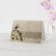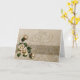 Um cartão muito elegante e personalizável para felicitar o feliz casal pelo seu casamento: Uma postura de rosas elegantes, uma espiral ornamental metálica e um fundo texturizado - tudo em tons de marfim e bronzeado.
