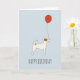 Ajude alguém especial a comemorar seu aniversário com este cartão de saudação Jack Russel Terrier. Este cartão tem um adorável Jack Russel Terrier segurando um balão vermelho.
