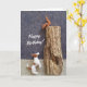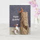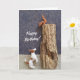 Envie cartões de aniversários com este cartão com agulha divertida felicitando Jack Russell e esculturas de esquilo.