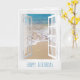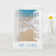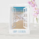 janela branca aberta com estrelas-do-mar na areia para o aniversário