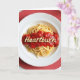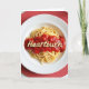 Um prato de espaguete revestido com molho de tomate soletra a palavra HEARTBURN com macarrão de macarrão em um prato branco para fazer anos mais velhos. O texto pode ser alterado.