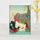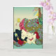Excelente vintage arte japonesa apresentando uma mulher em um quimono com seu gato amoroso.