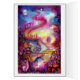 Impressão multimédia surreal, colorida, caprichosa, fantástica, em brilhos dourados, azul, verde, vermelho, rosa, amarelo, cor púrpura com folha de ouro e prata, O tema diz respeito a arquétipos e simbolismo alquímico medieval. Trata-se de uma visão destilada do imaginário coletivo occidental e oriental que busca imagens remotas das profundezas do misterioso jardim das sombras perdidas.