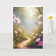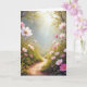 Um caminho sereno se estende através de um campo de florescentes flores cor-de-rosa e brancas do cosmos, levando a um texto de Dentro suavemente iluminado pode ser alterado.