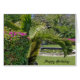 Cartão jardim tropical de aniversário com palmeiras
