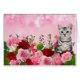 Gato de mesa listrado doce senta-se num jardim rosa com botões de flores cor-de-rosa e vermelhos e fazer de fundo cor-de-rosa macio, uma amante de gato e uma vazio de amante de animais de estimação com um toque feminino. Trata-se de uma exclusividade concebida e vendida pelo SalonOfArt.com.