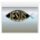 As palavras Jesus em ouro dentro de um símbolo de peixe. frontiernow.com