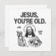 Engraçado "Jesus, você é velho. Brincadeira. O design de aniversário do Love ya mostra uma simples ilustração de Jesus sorrindo e apontando. Este cartão de aniversário cristão bonitinho faz um belo presente cristão que gosta de Jesus e designs de aniversário engraçados.