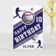 Jogador De Bola Moderno De Beisebol Pareceu Um Cartão De Aniversário. Celebre em estilo com este design de cartão de aniversário com tema de beisebol! Apresentando um esquema de cores azul e branco do marinho, letras em negrito e gráficos de baseball realistas, este design esportivo é perfeito para qualquer fã de baseball. O cartão mostra silhuetas dinâmicas de jogador, um beisebol 3D e detalhes de stripe. Seja para uma festa de criança ou um amante adulto de beisebol, este design premium e personalizável é uma corrida de casa para qualquer celebração de aniversário!