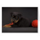 rottweiler de 1,5 meses está brincando com a bola de fio vermelho