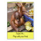 Adoráveis bebês da vida selvagem fazem um vazio divertido para manter contato com amigos. Depois que a barriga é cheio, o que é mais divertido do que mascarar bananas? Dois órfãos orangotangos em jogo na seção de criança do Centro de Cuidados de OIF na ilha de Borneo. Os ovangotangos são uma espécie ameaçada encontrada apenas nas ilhas de Borneo e Sumatra, na natureza; são silenciosos e gentis, e sua dieta consiste em vegetação e frutas. A artista doa seus lucros da venda deste cartão à Orangutan Foundation International, trabalhando para salvar os orangotangos e seu habitat de floresta tropical.