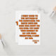Este cartão de saudação mostra um design que apresenta uma fonte Hit and Run com letras laranja contorno preto que mostra o verso da bíblia "Jonah 2:6" KJV sobre um fundo branco deste tema baseado na fé. Este verso está referindo o capítulo do Livro de Jonah segundo, mostrando o verso 6 neste tema de citação das escrituras bíblias do Rei James bíblia com as palavras "A Vontade de Deus!" nas costas. Feita com impressão colorida de alta qualidade em um papel de 3,5" x 5" (retrato) ou 5" x 3,5" (paisagem), feito e impresso nos EUA.