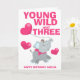 Cartão Jovem selvagem e aniversário de 3 anos cor-de-rosa