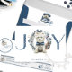 Envie este belo cartão de férias e faça seus amigos e família sorrirem! Cartão com a palavra "JOY" com a letra "O" feita pela linda mão pintada orelha-d-água, coroa floral de férias com um cachorrinho de Westie fofo à sua frente, numa mistura de tons azuis, marinhos, brancos e cinzas empoeirados, enquanto as letras "J" e "Y" com papel decorativo paisley em cinza azul e prateada. Dentro de papel decorativo na parte inferior, e filhote com o chapéu de Santa e Enfeites de natal azuis e prateados mostrando sua mensagem, que você pode impressão ou apagar de caixas de texto para receber o cartão dentro e escrever sua mensagem em casa. Menções, ornamentos, caixa de presente de Natal e papel decorativo em tons azuis, prateados e brancos. Coleção com coordenação de produtos disponíveis.