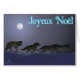 Uma noite de inverno fria e lua; uma mochila na prole. A leitura de texto "Joyeux Noё l" aparece em azul e branco brilhantes. Adicione seu próprio texto adicional.