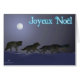 Uma noite de inverno fria e lua; uma mochila na prole. A leitura de texto "Joyeux Noё l" aparece em azul e branco brilhantes.