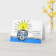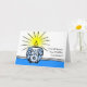 Cartão de saudação de papel de simpatia temática judaico com texto frontal personalizado. A placa apresenta uma ilustração de uma vela acesa com uma chama amarela brilhante. A vela se senta num porta-velas azul com floreio e a Estrela de David. Do céu você se confortará" texto no cobrir. Personalize a mensagem cobrir e dentro antes de fazer check-out, se desejar. Arte, imagem e direitos de autor versos © Shoaff Ballanger Studios, 2023.
