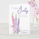 Um cartão bonito para alguém especial com aniversário de julho! Este cartão apresenta larkspur a aquarela, a flor do mês de nascimento de julho. Dentro, o cartão diz: "Que o seu dia esteja cheio de felicidade e o seu ano cheio de alegria". O texto na frente e no dentro é personalizável para que você possa adicionar sua própria mensagem pessoal ou alterar a fonte.