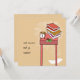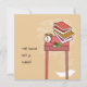 wenskaart met afbeelding van tafeltje met boeken, wekker en chocolade. tekst voorkant: succes met je examen! Alle tekst kan aangepast worden.