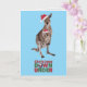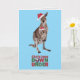 Mamãe e bebê canguru estão vestindo chapéus de Papai Noel.