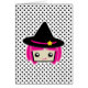 Cartão Kawaii Pink Brincadinho e Divertido com Nota de Bruxa. Excelente para crianças e adultos para o Halloween, aniversários e ocasiões especiais.