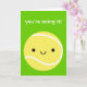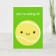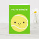 Uma bola de tênis amarelo feliz kawaii em um fundo de campo de grama verde. Excelente para jogadores tênis e fãs desportivos. O texto diz "você está agindo!" mas pode ser editado para uma frase diferente ou incluir um nome.